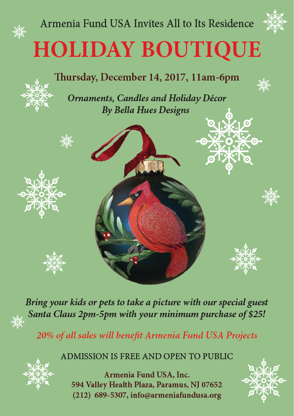 All are welcome to Armenia Fund USA's residence on Thursday, December 14, 2017, 11am-6pm!
